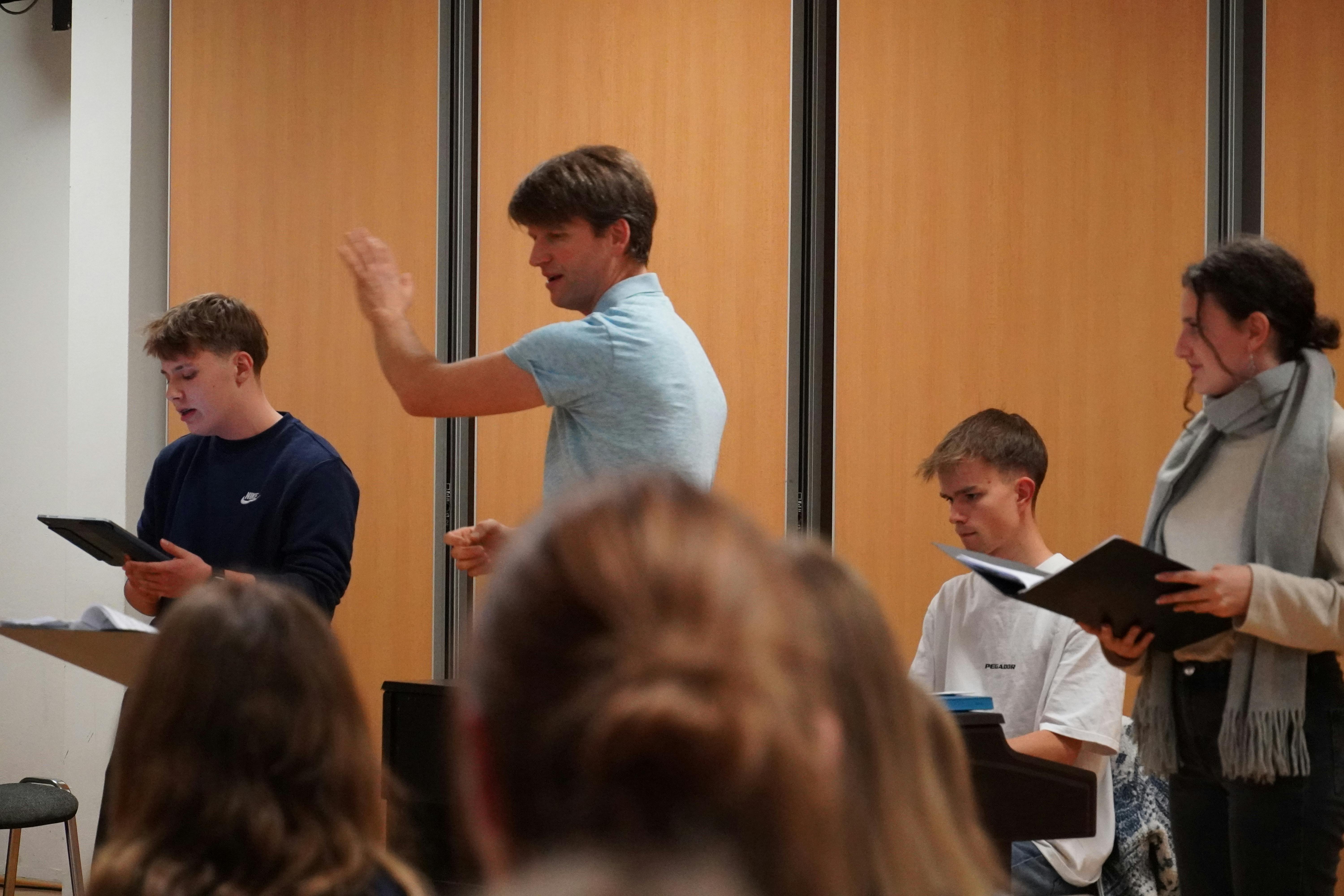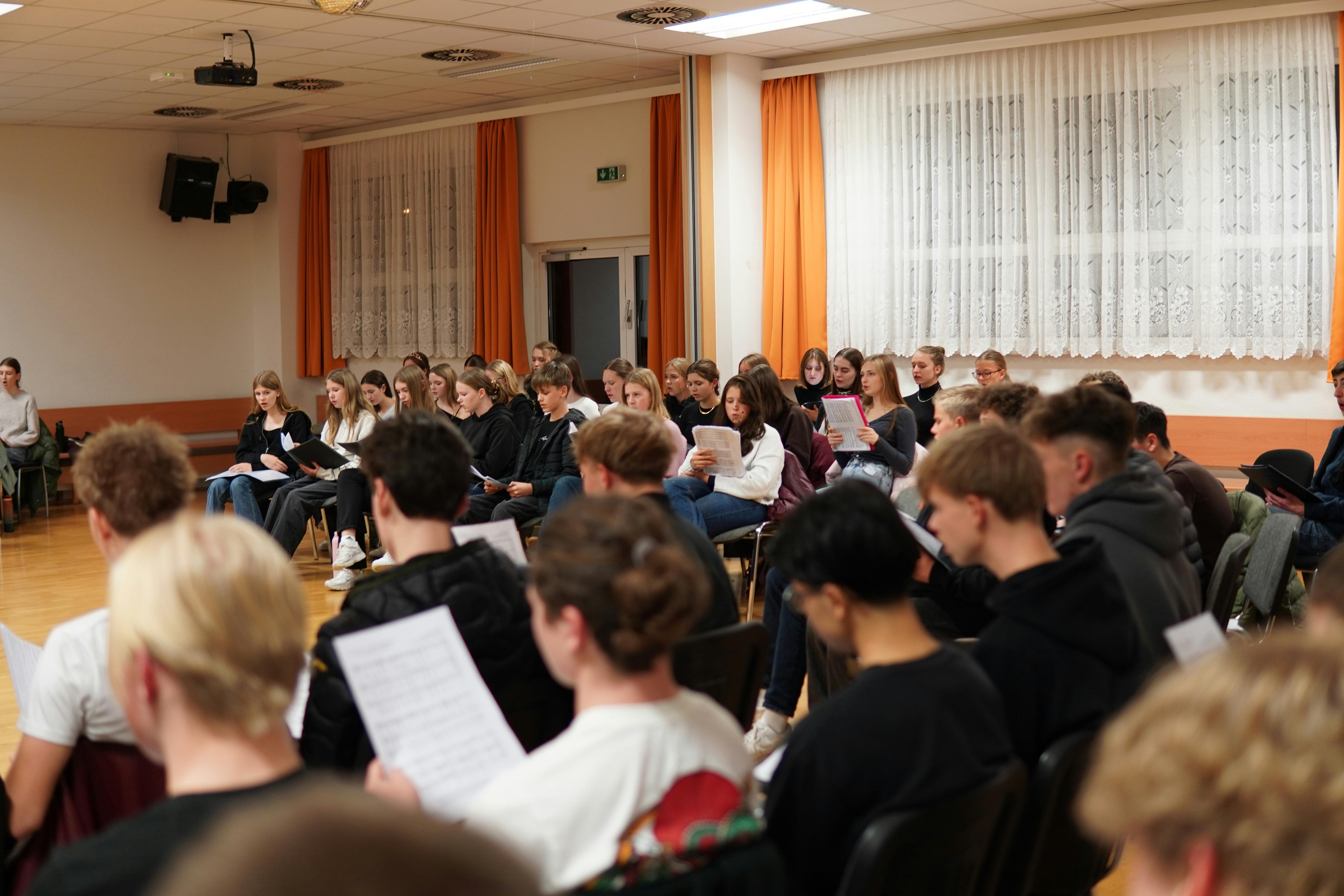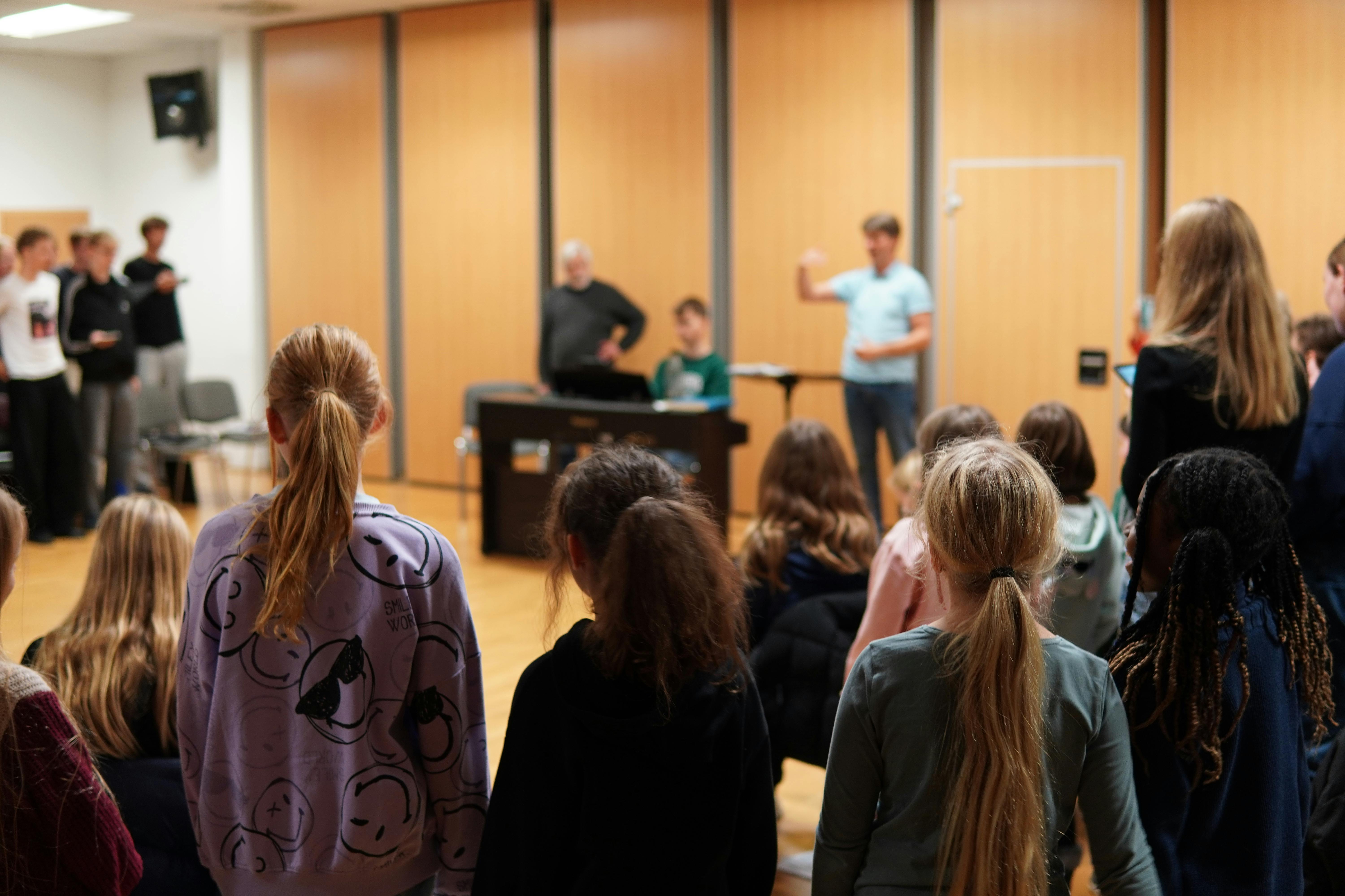 Wir wurden herzlich empfangen und in die Aula geführt, wo wir für Herrn Clausnitzer ein Lied aus unserem neuen Weihnachtsrepertoire sangen. Die Überraschung ist definitiv gelungen – es war ein kurzer, aber emotionaler und schöner Besuch.