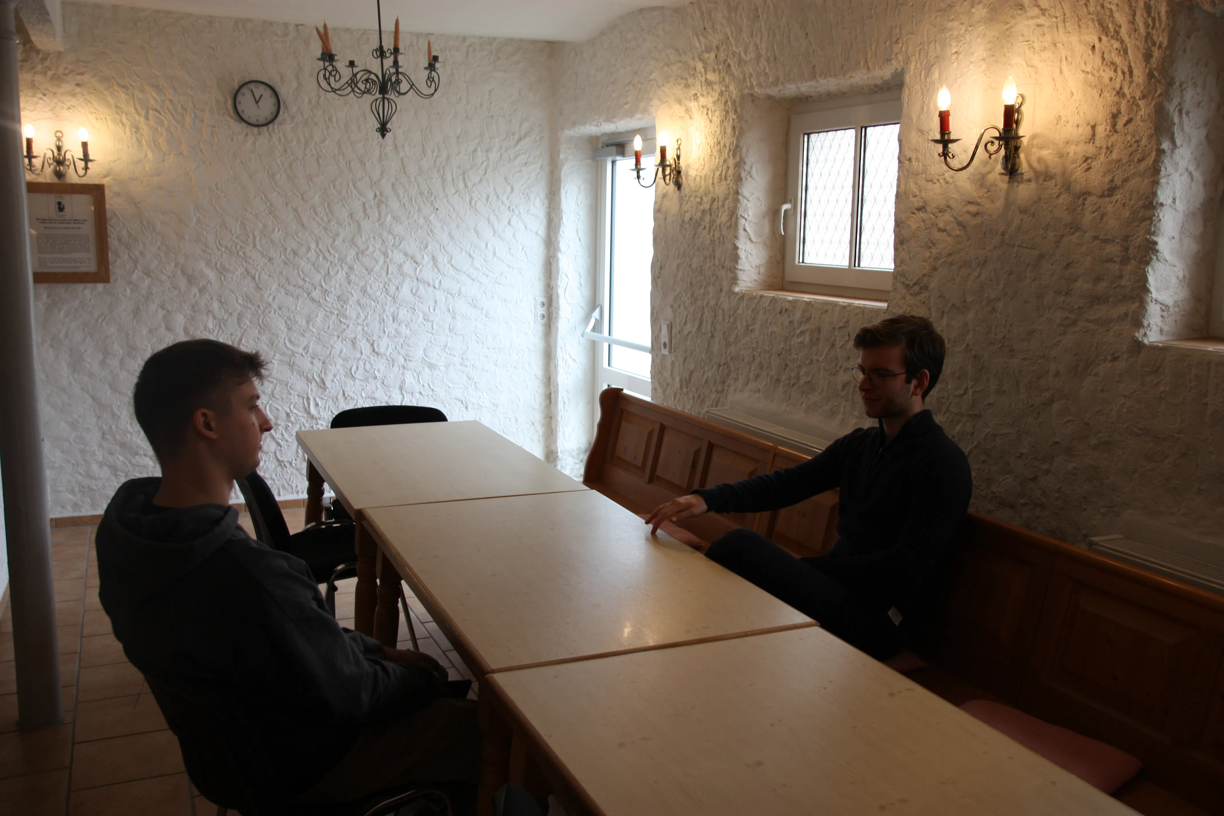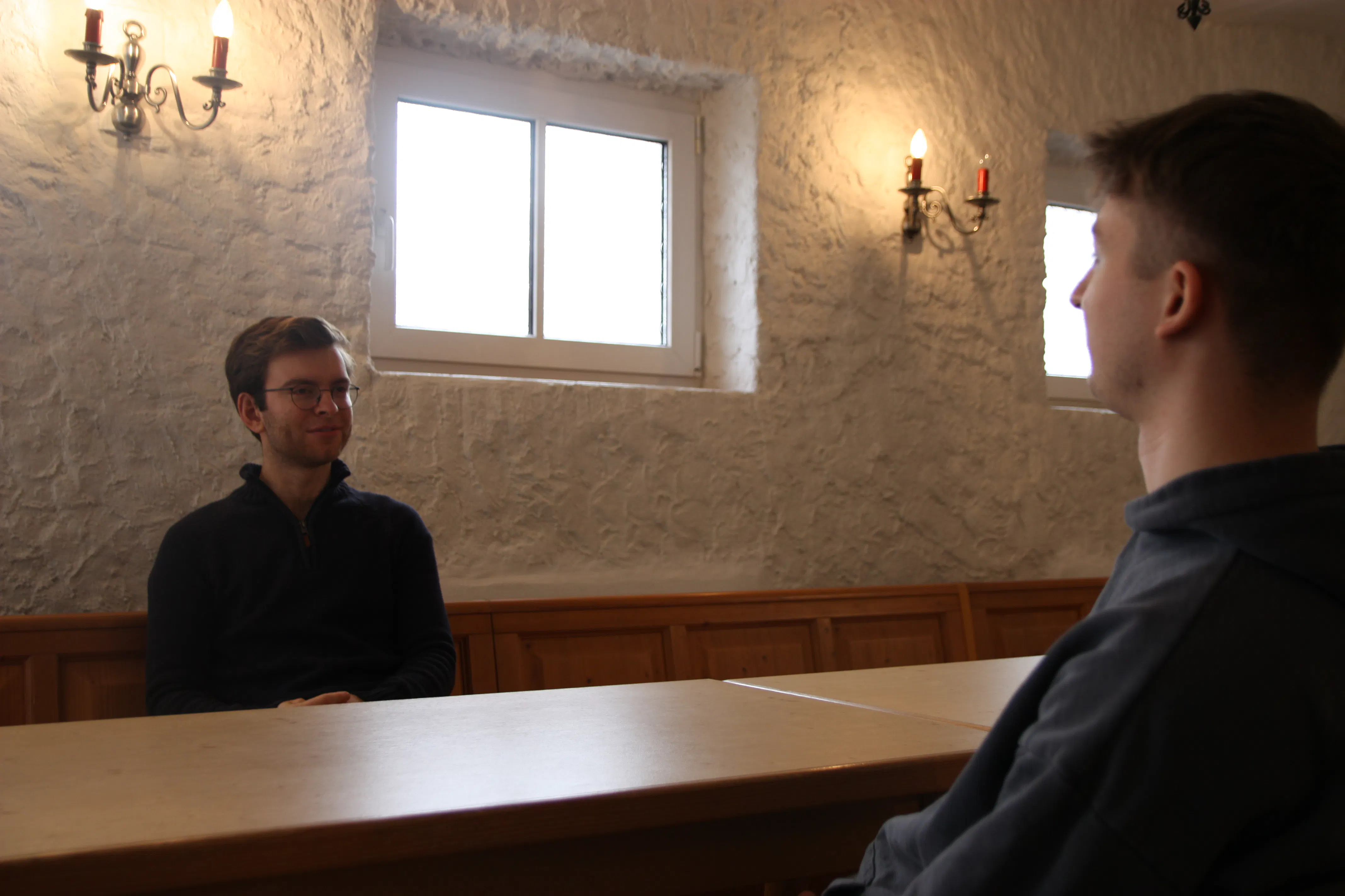 Ich war in der 9. Klasse und hatte mir gegenüber 12.-Klässer sitzen. Für die war die Altersdifferenz aber kein Problem. Wir haben uns gut verstanden. Ich finde, das merkt man auch in der Schule, dass der Ort des Lernens um diese soziale Komponente erweitert wird, dass man sich kennt, wenn man sich über den Weg läuft und man nicht einer von 800 ist.